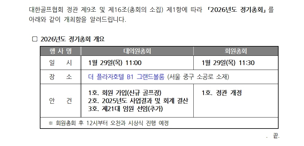 2026년 KGA랭킹시스템 운영 변경사항 적용 및 시스템 테스트 기간 알림
