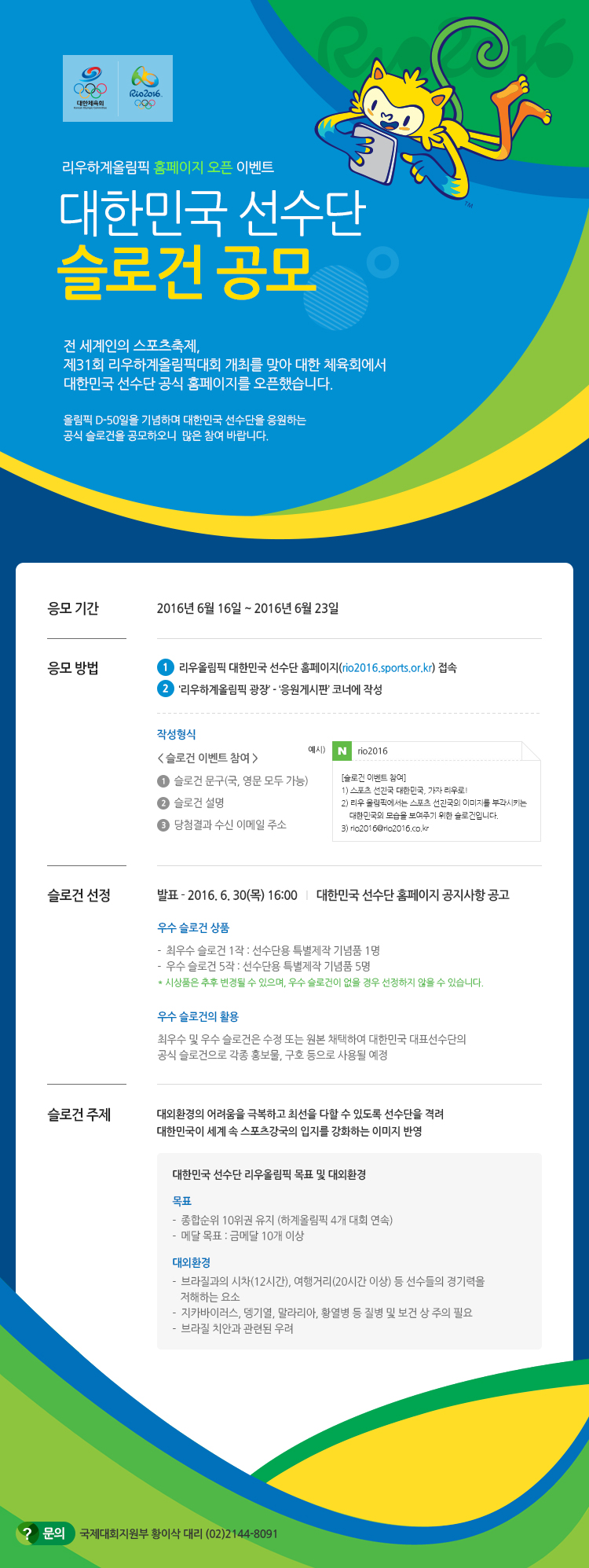 ㅇ 공 모 명 : 리우올림픽 대한민국 선수단 슬로건 공모