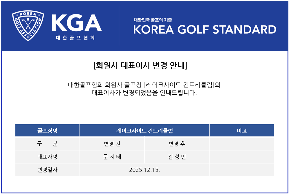 회원사 대표이사 변경 안내 - [레이크사이드 컨트리클럽]