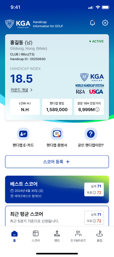 핸디캡을 발급받아