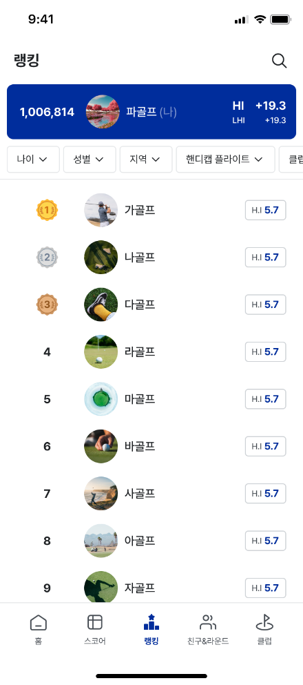 본인의 골프 실력을 관리하세요