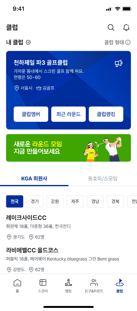 골프 클럽을 만들어 친구, 지인과 함께